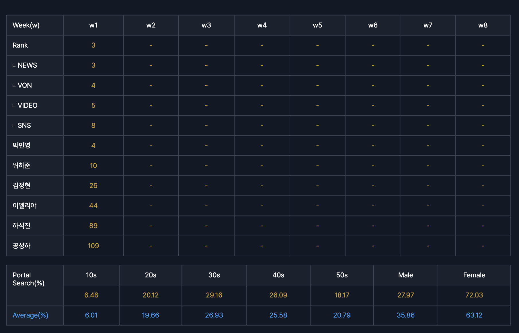 - 俳優別の注目度では、パク・ミニョンさんが4位、ウィ・ハジュンさんが10位にランクイン。主演陣のキャラクター像に対する関心の高さが数値に現れました。