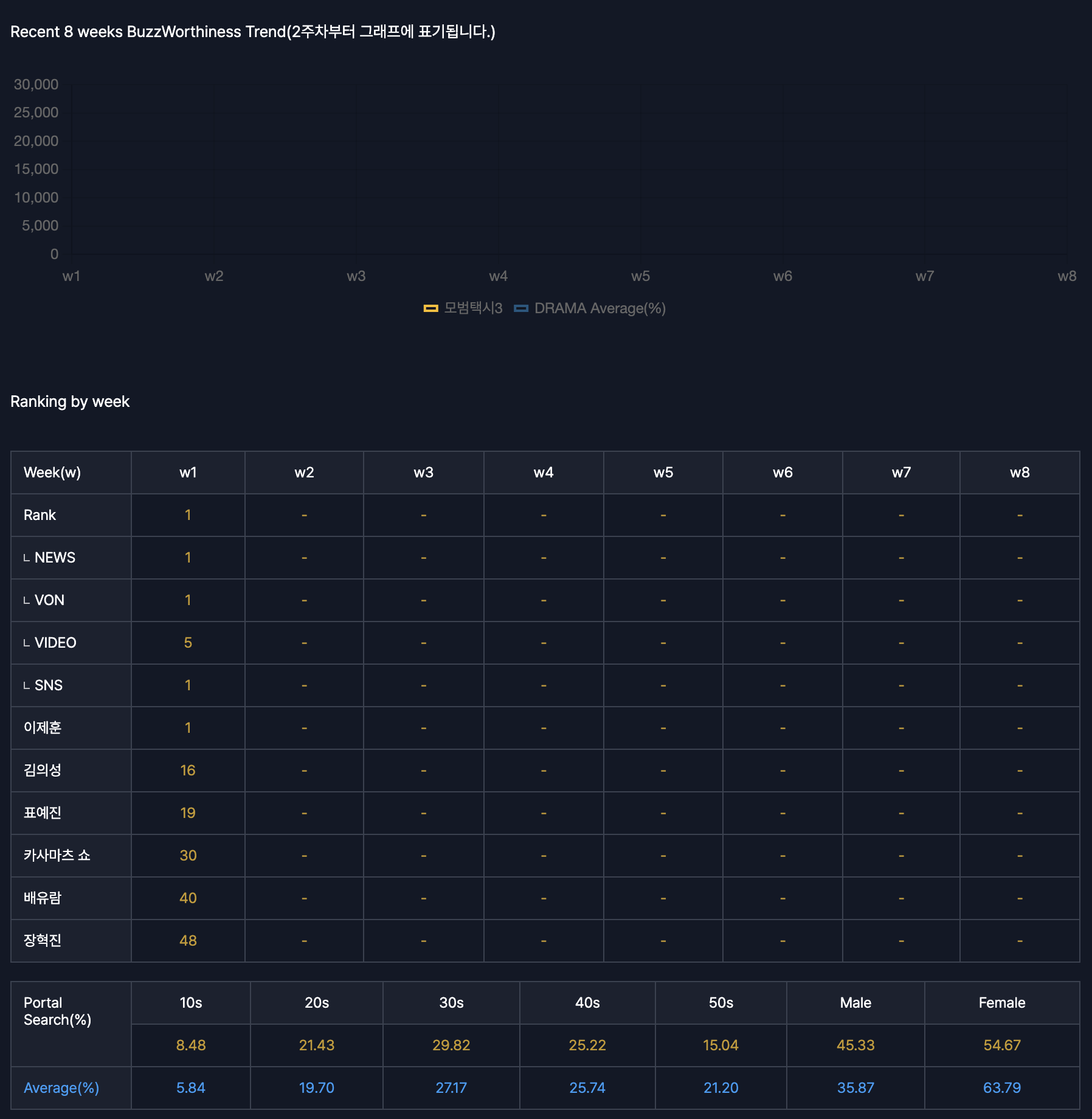 - 俳優別の注目度でも、主演のイ・ジェフンが堂々の1位にランクイン。彼の演じるキム・ドギがいかに愛され、期待されているかが一目瞭然です。