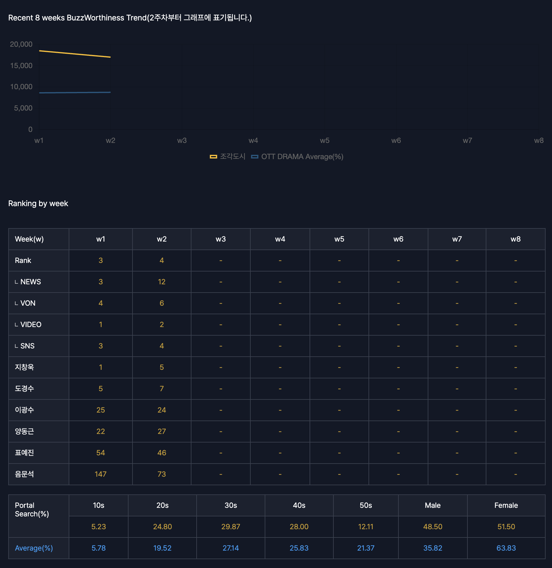 - 俳優別の注目度でも、主演のチ・チャンウクが1位(第1週)にランクイン。ド・ギョンスも上位をキープしており、主演2人の演技対決がいかに注目を集めているかが一目瞭然です。